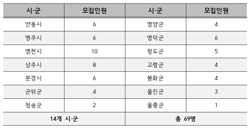 - 신청자는 최초 공고일 전일 기준 경상북도 외에 주소를 두어야 함