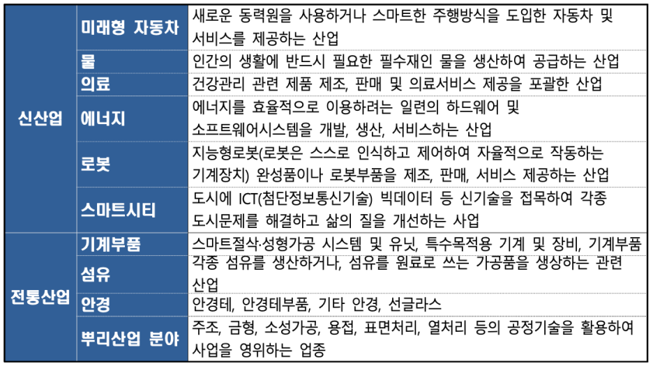 (신산업) 미래형 자동차, 물, 의료, 에너지, 로봇, 스마트시티