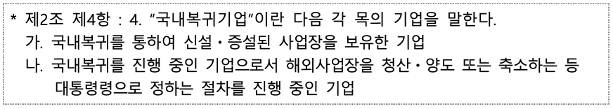 ① 국내복귀 기업 (해외진출기업의 국내복귀 지원에 관한 법률)