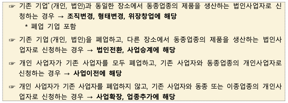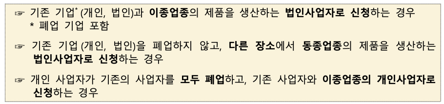 아래의 기준에 해당되는 경우, 신청하는 사업자(개인, 법인)를 기준으로