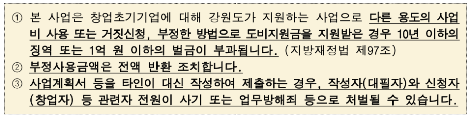 이를 미숙지하여 발생하는 불이익 및 그에 따른 책임은 동 사업을 신청한 창업기업에게 있습니다.