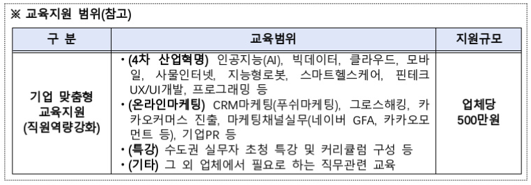 - 근로자 직무관련 교육 온, 오프라인 수강료 지원