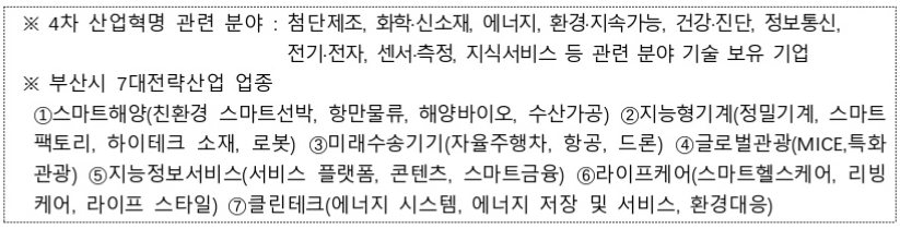 부산시 7대 전략산업 기술을 보유하고 있는 창업 7년 이내의 청년 대표자 기업