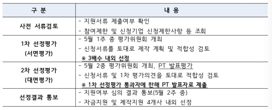 * 사전 검토 시, 지원 목적에 부합하지 않을 경우 평가 제외 후 탈락 통보