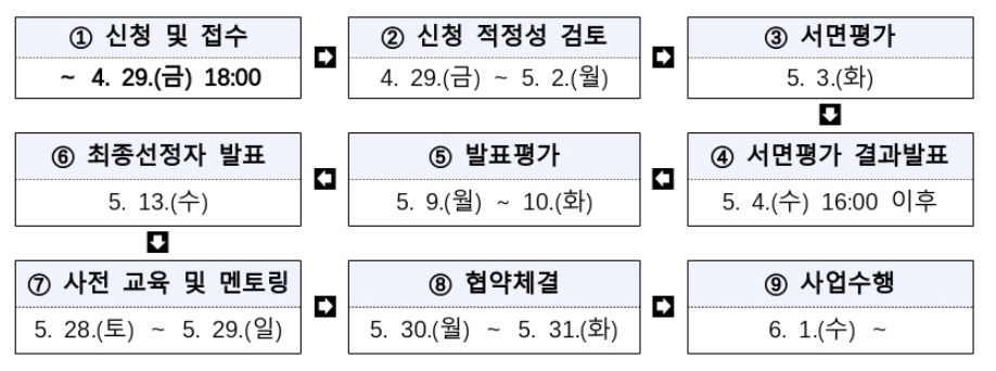 : 접수마감일까지 제출된 사업계획서, 증빙서류 등을 토대로 심사 및 신청자격 검토