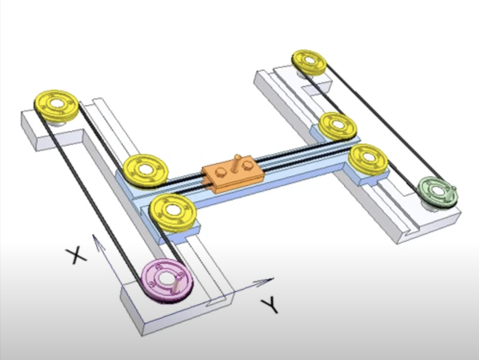 XZ-Y방식은 각 축이 독립적으로 움직이지만 XY-Z방식은 X,Y축이 하나의 벨트로 연결 있다는 점이 특징입니다.