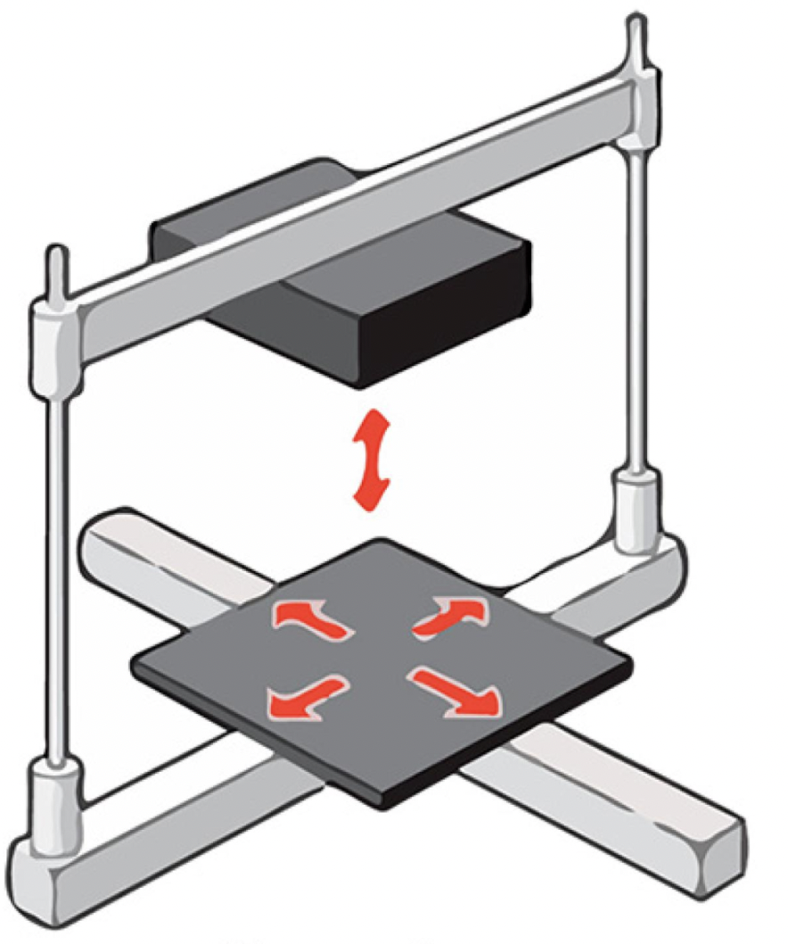 XY-Z방식은 헤드가 X,Y축으로 움직이고, 베드가 Z축으로 움직이며 형상을 출력합니다.
