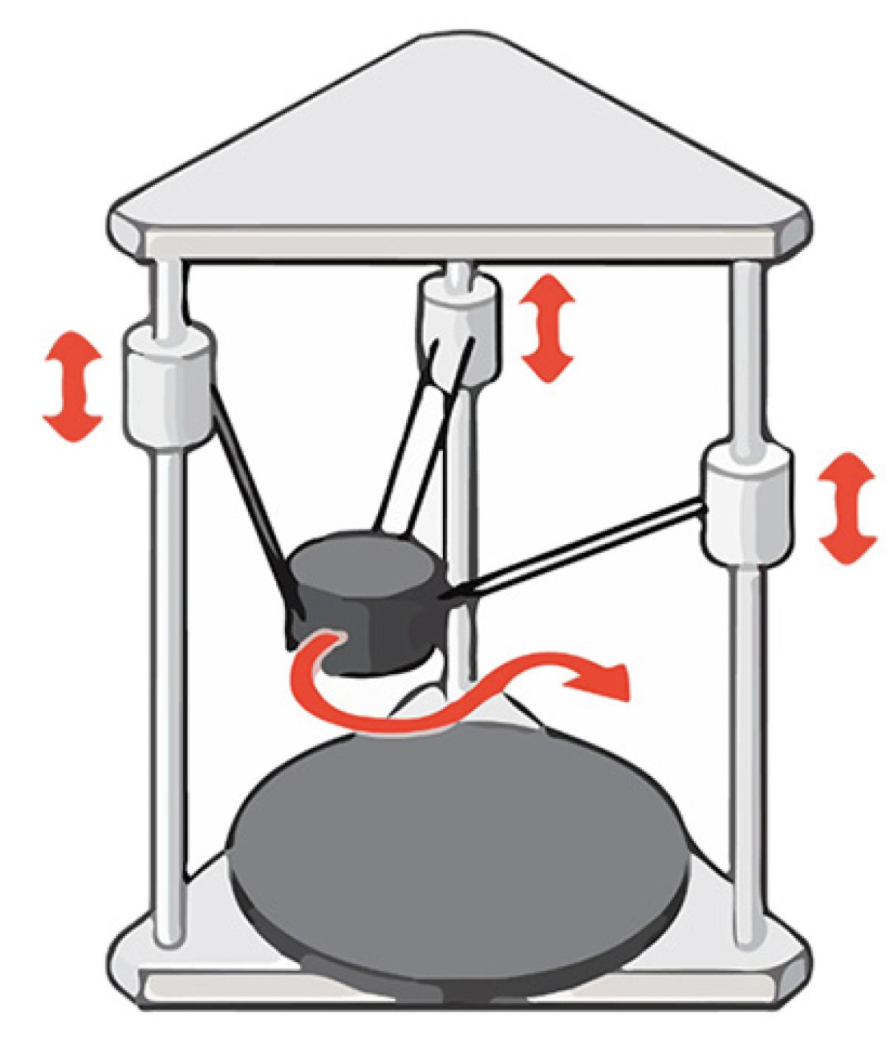 산업에서 이용되는 델타 로봇의 동작 방식을 적용한 방식입니다.