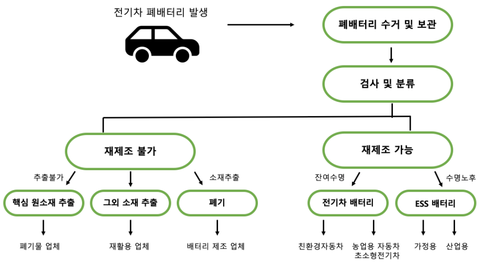 폐배터리의 명확한 기준 설정, 배터리 이력 관리 , 회수 인프라 구축 및 세제 지원