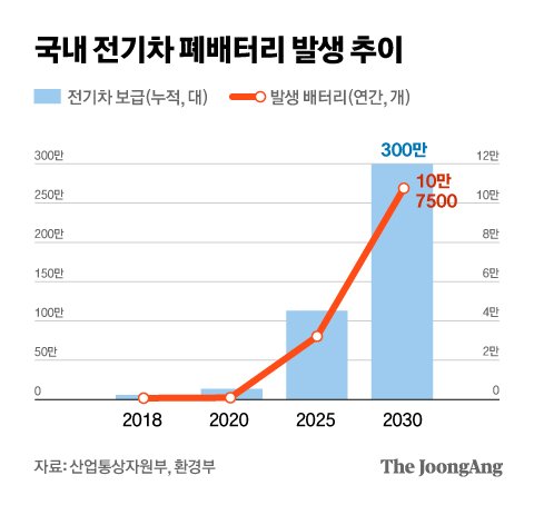 전기차 판매량이 증가로 전기차에서 배출되는 폐배터리가 늘어났습니다.