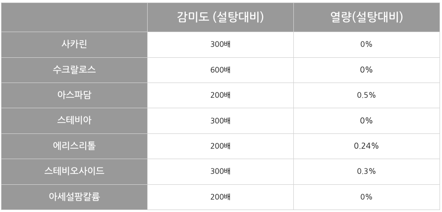 - 설탕처럼 단 맛을 내지만 칼로리가 훨씬 낮습니다.