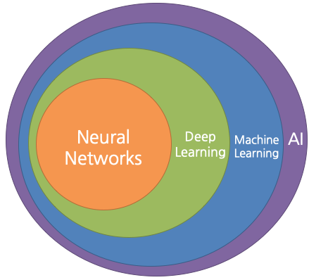 머신러닝과 그 구성요소인 딥러닝, 신경망은 모두 AI의 세부 하위집합입니다.