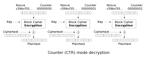 즉 카운터를 암호화 한 비트열과 평문블록과의 XOR 연산을 취한 결과가 암호문 블록이 됩니다.