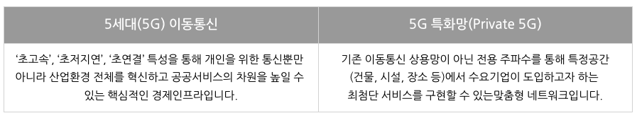 2. 5세대(5G) 이동통신과 5G 특화망 특성 비교