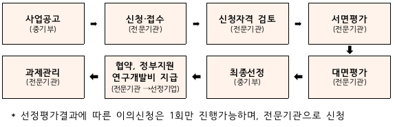 평가, 선정, 협약 일정 등은 신청과제 수에 따라 일부 조정될 수 있음