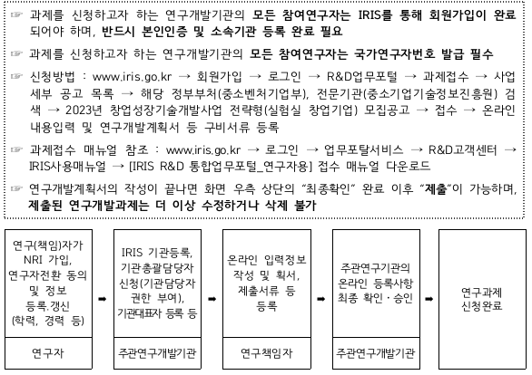 ◦ 범부처통합연구지원시스템(IRIS)를 통해 연구개발계획서 신청・접수