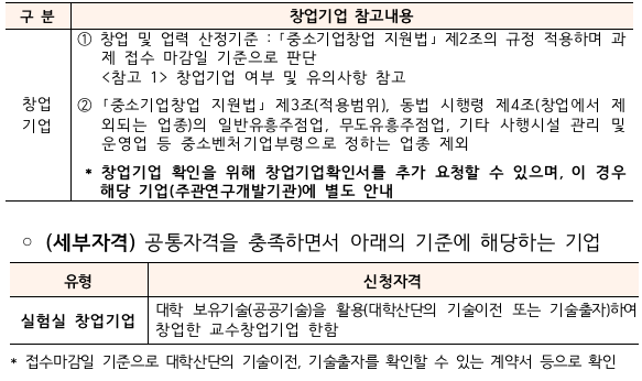 공통자격을 충족하면서 세부자격의 기준에 해당하는 기업