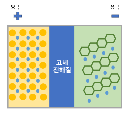 전고체 배터리는 액체 전해질 대신 고체 전해질이 포함되면서 고체 전해질이 분리막의 역할까지 대신하고 있습니다.