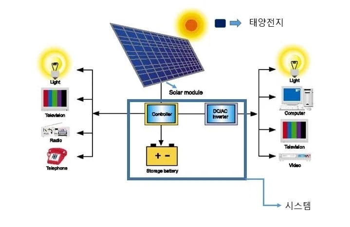 태양광 발전 시스템은 발전기에 해당하는 태양전지 모듈(모듈의 집합체인 어레이),
