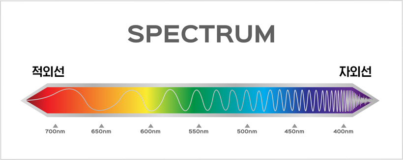 700㎚ 정도의 빛은 빨간색으로 400㎚ 정도의 빛은 보라색으로 감지합니다.