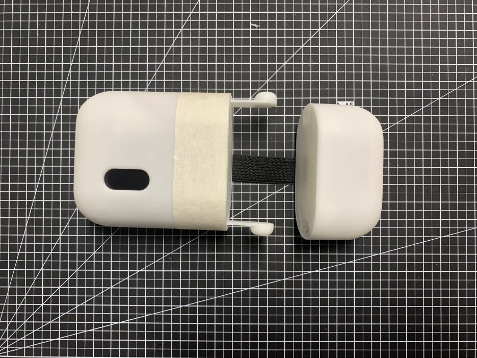의료기기 시제품의 내부의 롤에 끈을 감으면 이런 모습이 됩니다